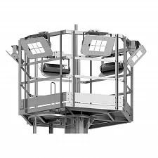Высокомачтовая опора освещения ОВС-40 представляет собой современное инженерное решение для организации качественного освещения на обширных территориях. Конструктивно мачта выполнена в многогранном исполнении, что обеспечивает превосходные показатели прочности при оптимальном весе. Стационарная корона, венчающая опору освещения, может иметь различную конфигурацию в зависимости от проектных требований: круглую форму для равномерного кругового освещения, квадратную для направленного светового потока или специальную модификацию с наклонной рамой для решения нестандартных задач освещения.